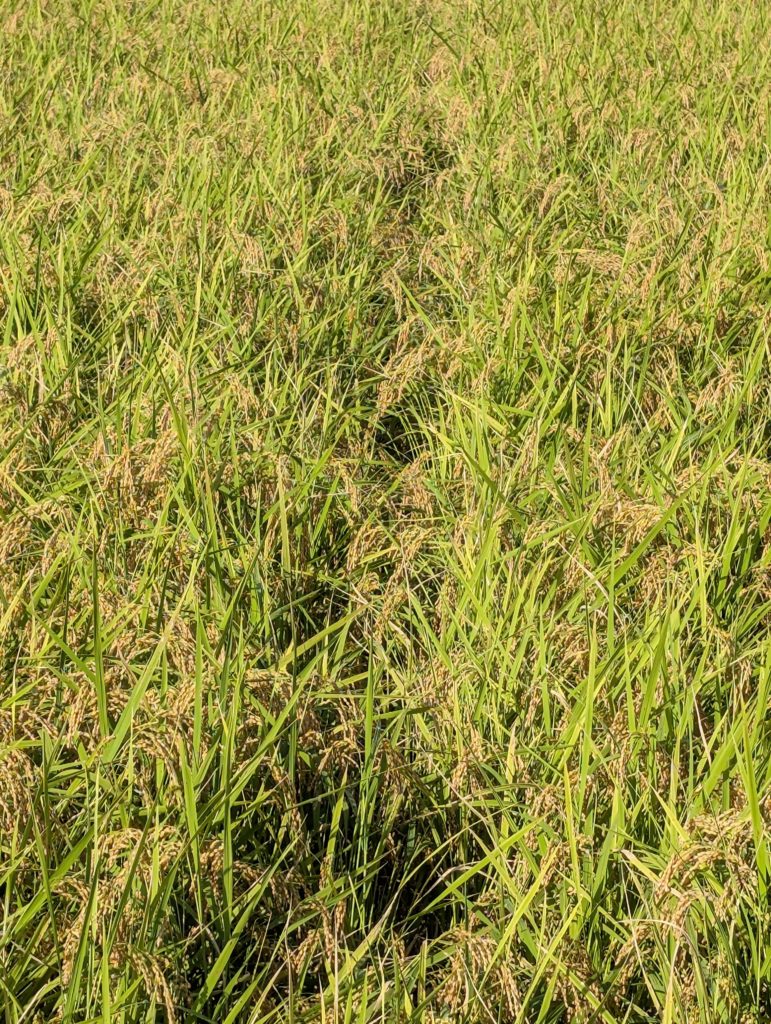 イノシシが入ったところはイネが倒れて道ができています。